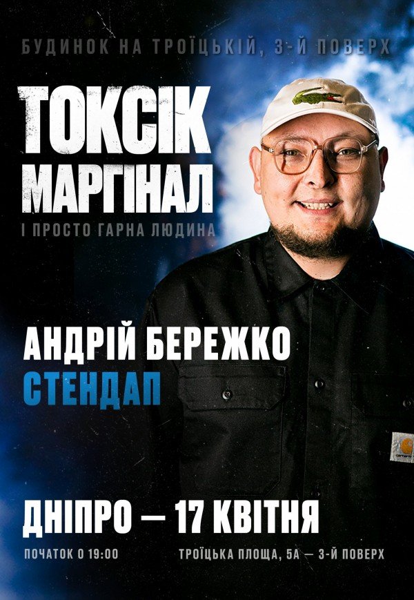Токсик, маргинал и просто хороший человек. Андрей Бережко состоится 17 апреля 2026, 19:00, пятница в Дом на Троицкой. Театральный этаж (3 этаж). С помощью сервиса internet-bilet.ua, Вы сможете с легкостью забронировать, заказать и купить билеты на интересующий Вас концерт, спектакль, оперу, балет, мастер-классы, спортивные и детские мероприятия, оплатив их самым удобным для Вас способом: через интернет банковской картой VISA/MasterCard, наличными или курьером, если сделаете заказ билета c доставкой.
