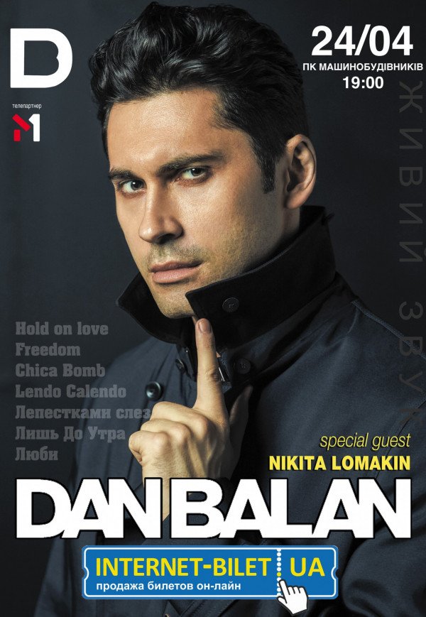 DAN BALAN состоится 24 апреля 2018, 19:00, вторник в ДК Машиностроителей. С помощью сервиса internet-bilet.ua, Вы сможете с легкостью забронировать, заказать и купить билеты на интересующий Вас концерт, спектакль, оперу, балет, мастер-классы, спортивные и детские мероприятия, оплатив их самым удобным для Вас способом: через интернет банковской картой VISA/MasterCard, наличными или курьером, если сделаете заказ билета c доставкой.