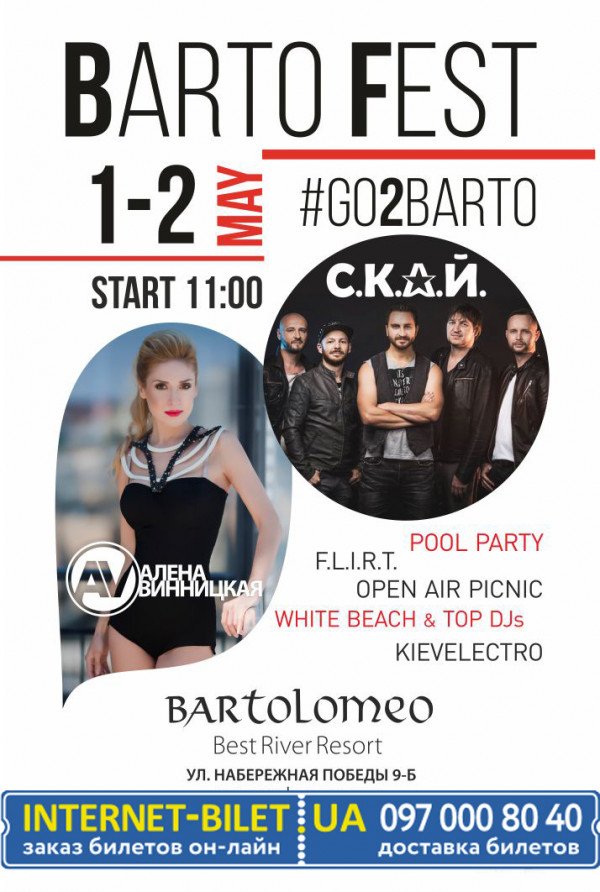 BartoFest состоится 1 мая 2016, 11:00, воскресенье в Bartolomeo. С помощью сервиса internet-bilet.ua, Вы сможете с легкостью забронировать, заказать и купить билеты на интересующий Вас концерт, спектакль, оперу, балет, мастер-классы, спортивные и детские мероприятия, оплатив их самым удобным для Вас способом: через интернет банковской картой VISA/MasterCard, наличными или курьером, если сделаете заказ билета c доставкой.