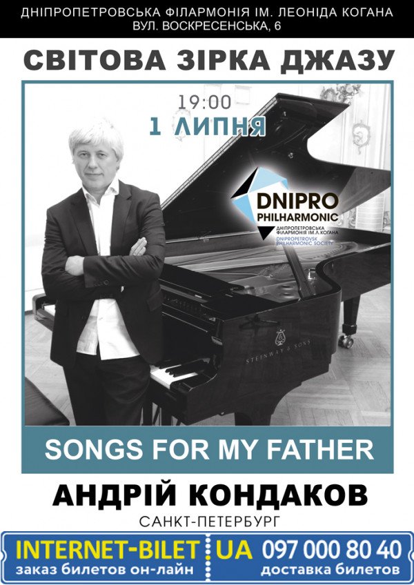 Андрей Кондаков состоится 1 июля 2016, 19:00, пятница в Днепропетровская филармония имени Л. Б. Когана. С помощью сервиса internet-bilet.ua, Вы сможете с легкостью забронировать, заказать и купить билеты на интересующий Вас концерт, спектакль, оперу, балет, мастер-классы, спортивные и детские мероприятия, оплатив их самым удобным для Вас способом: через интернет банковской картой VISA/MasterCard, наличными или курьером, если сделаете заказ билета c доставкой.