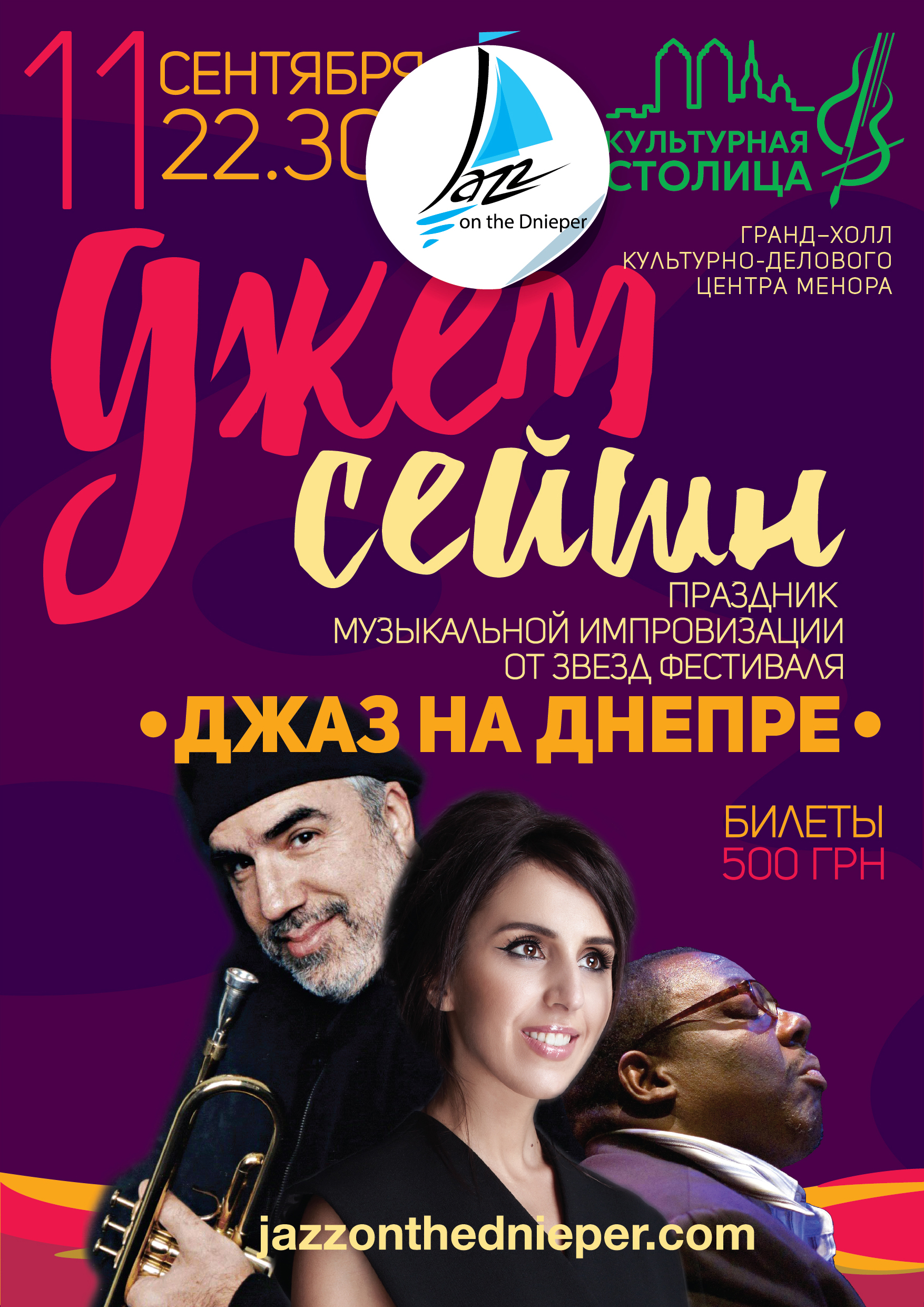 «Джем-сейшн Международного фестиваля «ДЖАЗ на ДНЕПРЕ» состоится 11 сентября 2016, 22:30, воскресенье в Grand Hall, Менора. С помощью сервиса internet-bilet.ua, Вы сможете с легкостью забронировать, заказать и купить билеты на интересующий Вас концерт, спектакль, оперу, балет, мастер-классы, спортивные и детские мероприятия, оплатив их самым удобным для Вас способом: через интернет банковской картой VISA/MasterCard, наличными или курьером, если сделаете заказ билета c доставкой.
