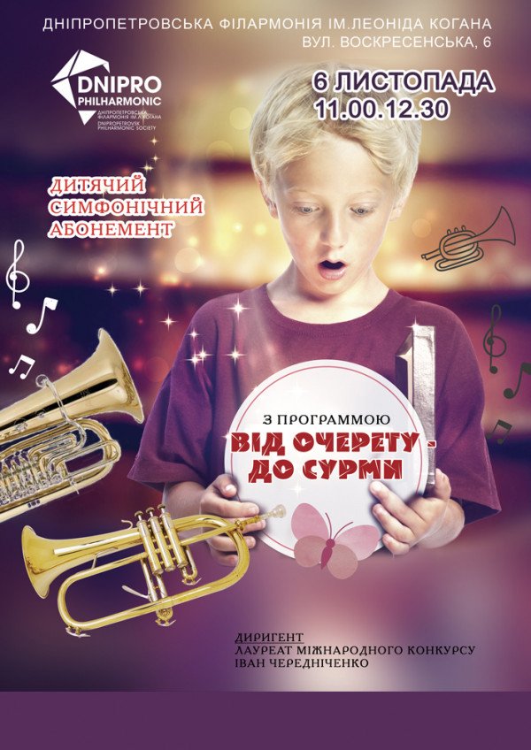 Дитячий симфонічний абонемент з програмою «ВІД ОЧЕРЕТУ ДО СУРМИ»