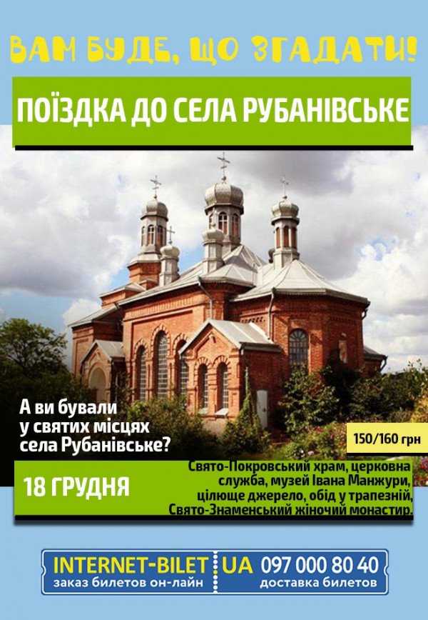 Купить билет на Поїздка до села Рубанівське (+богослужіння) можно не отходя от компьютера!