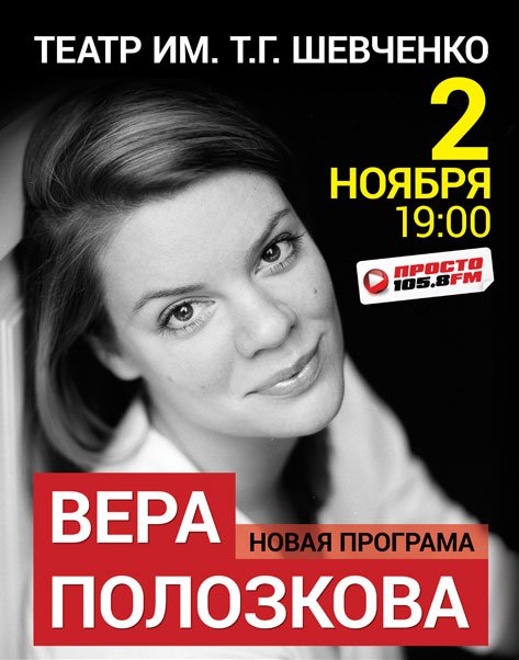 Вера Полозкова состоится 2 ноября 2013, 19:00, суббота в Днепровский национальный академический украинский музыкально-драматический театр им. Т.Г. Шевченко. С помощью сервиса internet-bilet.ua, Вы сможете с легкостью забронировать, заказать и купить билеты на интересующий Вас концерт, спектакль, оперу, балет, мастер-классы, спортивные и детские мероприятия, оплатив их самым удобным для Вас способом: через интернет банковской картой VISA/MasterCard, наличными или курьером, если сделаете заказ билета c доставкой.
