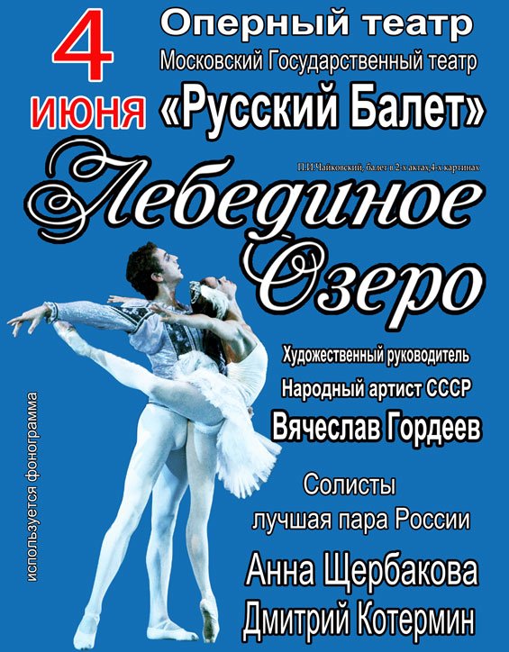 Лебединое озеро состоится 4 июня 2014, 19:00, среда в Днепровский академический театр оперы и балета. С помощью сервиса internet-bilet.ua, Вы сможете с легкостью забронировать, заказать и купить билеты на интересующий Вас концерт, спектакль, оперу, балет, мастер-классы, спортивные и детские мероприятия, оплатив их самым удобным для Вас способом: через интернет банковской картой VISA/MasterCard, наличными или курьером, если сделаете заказ билета c доставкой.