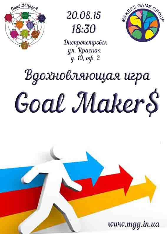 Коучинговая игра «Goal MAker$» (перевод Целесоздатели) является инновационной разработкой и создана как эффективный инструмент для проработки практически любой цели (краткосрочной, среднесрочной и даже долгосрочной). Цель может касаться бизнес вопросов, а так же личных отношений, различных изменений, предстоящих в жизни участника (таких как переезд, переход на другую работу, открытие собственного бизнеса, вступление в брак, приобретение движимого и недвижимого имущества, путешествий и других).