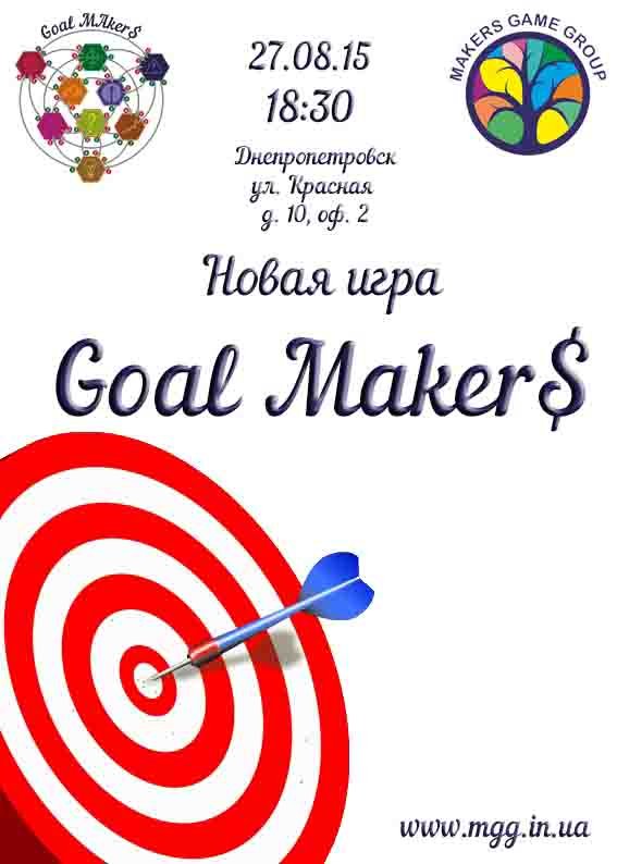 Коучинговая игра «Goal MAker$» (перевод Целесоздатели) является инновационной разработкой и создана как эффективный инструмент для проработки практически любой цели (краткосрочной, среднесрочной и даже долгосрочной). Цель может касаться бизнес вопросов, а так же личных отношений, различных изменений, предстоящих в жизни участника (таких как переезд, переход на другую работу, открытие собственного бизнеса, вступление в брак, приобретение движимого и недвижимого имущества, путешествий и других).