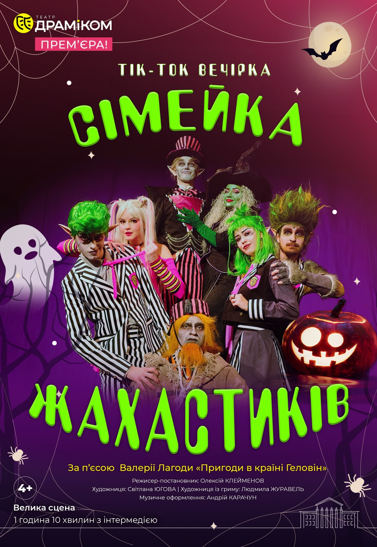 Спектакль «Семейка Ужастиков» состоится 1 ноября 2025, 12:00, суббота в Днепровский академический театр драмы и комедии. С помощью сервиса internet-bilet.ua, Вы сможете с легкостью забронировать, заказать и купить билеты на интересующий Вас концерт, спектакль, оперу, балет, мастер-классы, спортивные и детские мероприятия, оплатив их самым удобным для Вас способом: через интернет банковской картой VISA/MasterCard, наличными или курьером, если сделаете заказ билета c доставкой.
