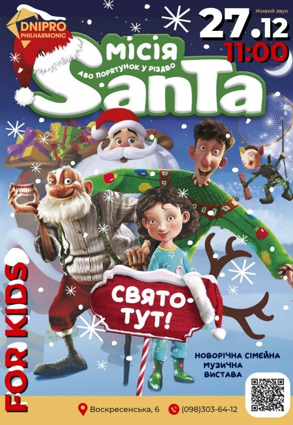Інтерактивна вистава «Місія Санта або Порятунок у Різдво» состоится 27 декабря 2025, 11:00, суббота в Днепропетровская филармония имени Л. Б. Когана. С помощью сервиса internet-bilet.ua, Вы сможете с легкостью забронировать, заказать и купить билеты на интересующий Вас концерт, спектакль, оперу, балет, мастер-классы, спортивные и детские мероприятия, оплатив их самым удобным для Вас способом: через интернет банковской картой VISA/MasterCard, наличными или курьером, если сделаете заказ билета c доставкой.