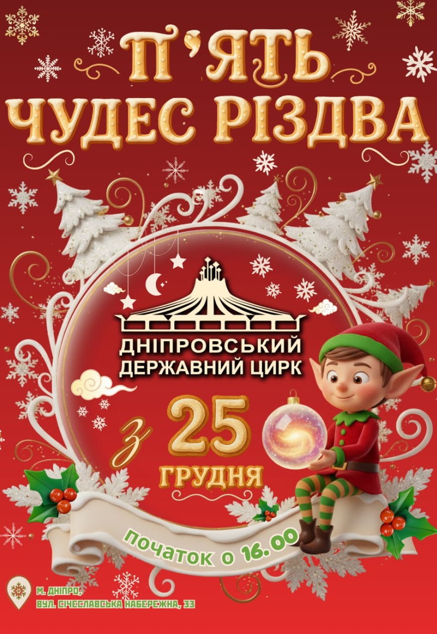 Цирк «Пять чудес Рождества» состоится 2 января 2026, 16:00, пятница в Днепровский цирк. С помощью сервиса internet-bilet.ua, Вы сможете с легкостью забронировать, заказать и купить билеты на интересующий Вас концерт, спектакль, оперу, балет, мастер-классы, спортивные и детские мероприятия, оплатив их самым удобным для Вас способом: через интернет банковской картой VISA/MasterCard, наличными или курьером, если сделаете заказ билета c доставкой.