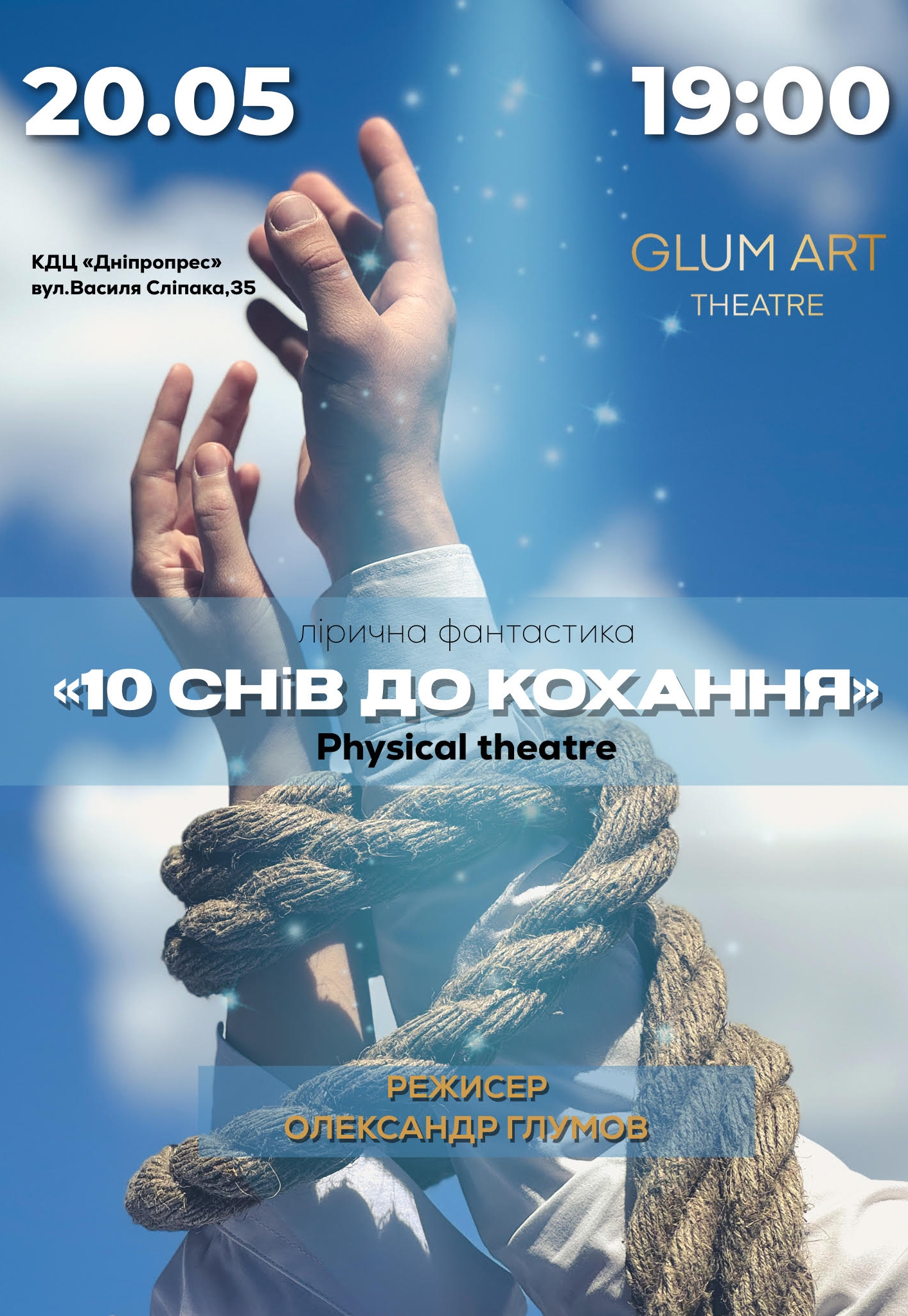 Театр GlumArt. Спектакль «10 снов к любви» состоится 20 мая 2026, 19:00, среда в КДЦ Днепропресс. С помощью сервиса internet-bilet.ua, Вы сможете с легкостью забронировать, заказать и купить билеты на интересующий Вас концерт, спектакль, оперу, балет, мастер-классы, спортивные и детские мероприятия, оплатив их самым удобным для Вас способом: через интернет банковской картой VISA/MasterCard, наличными или курьером, если сделаете заказ билета c доставкой.