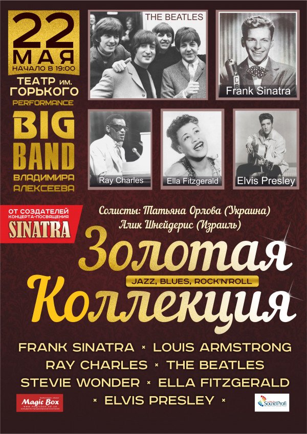 Золотая коллекция состоится 22 мая 2016, 19:00, воскресенье в Днепровский академический театр драмы и комедии. С помощью сервиса internet-bilet.ua, Вы сможете с легкостью забронировать, заказать и купить билеты на интересующий Вас концерт, спектакль, оперу, балет, мастер-классы, спортивные и детские мероприятия, оплатив их самым удобным для Вас способом: через интернет банковской картой VISA/MasterCard, наличными или курьером, если сделаете заказ билета c доставкой.