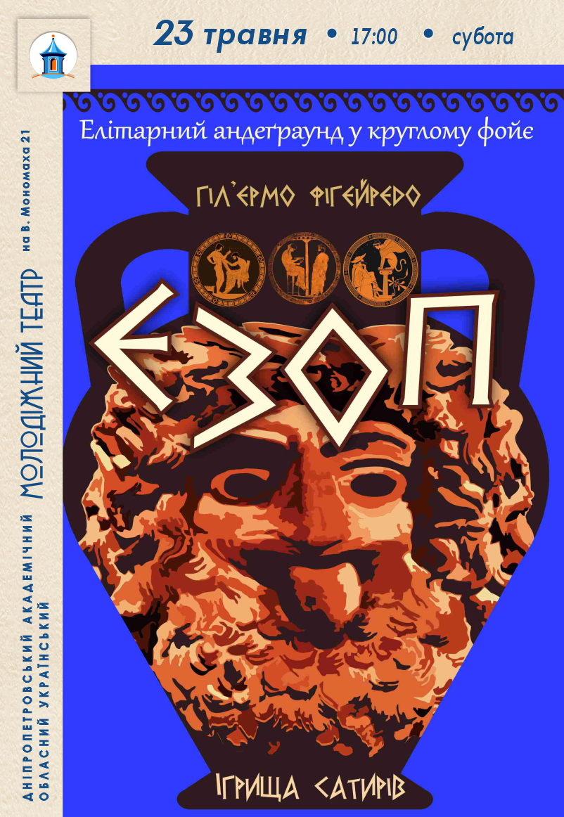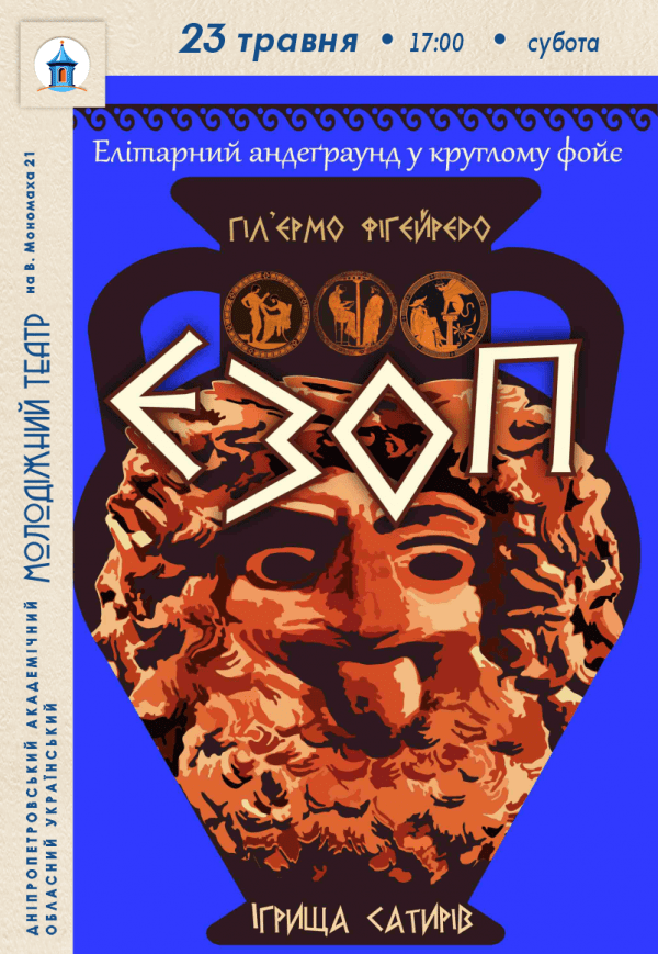 Спектакль «Эзоп» состоится 23 мая 2026, 17:00, суббота в Днепропетровский академический молодежный театр. С помощью сервиса internet-bilet.ua, Вы сможете с легкостью забронировать, заказать и купить билеты на интересующий Вас концерт, спектакль, оперу, балет, мастер-классы, спортивные и детские мероприятия, оплатив их самым удобным для Вас способом: через интернет банковской картой VISA/MasterCard, наличными или курьером, если сделаете заказ билета c доставкой.