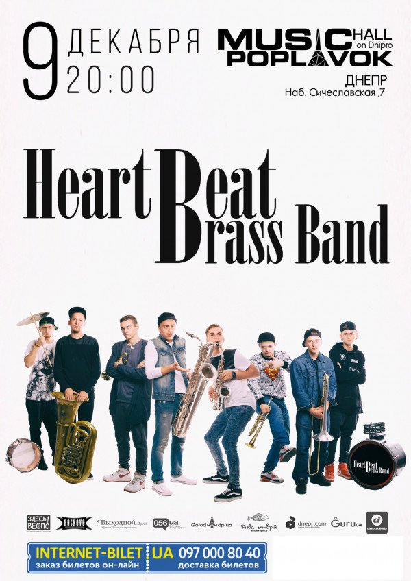 HeartBeat Brass band состоится 9 декабря 2016, 20:00, пятница в Poplavok Music Hall. С помощью сервиса internet-bilet.ua, Вы сможете с легкостью забронировать, заказать и купить билеты на интересующий Вас концерт, спектакль, оперу, балет, мастер-классы, спортивные и детские мероприятия, оплатив их самым удобным для Вас способом: через интернет банковской картой VISA/MasterCard, наличными или курьером, если сделаете заказ билета c доставкой.
