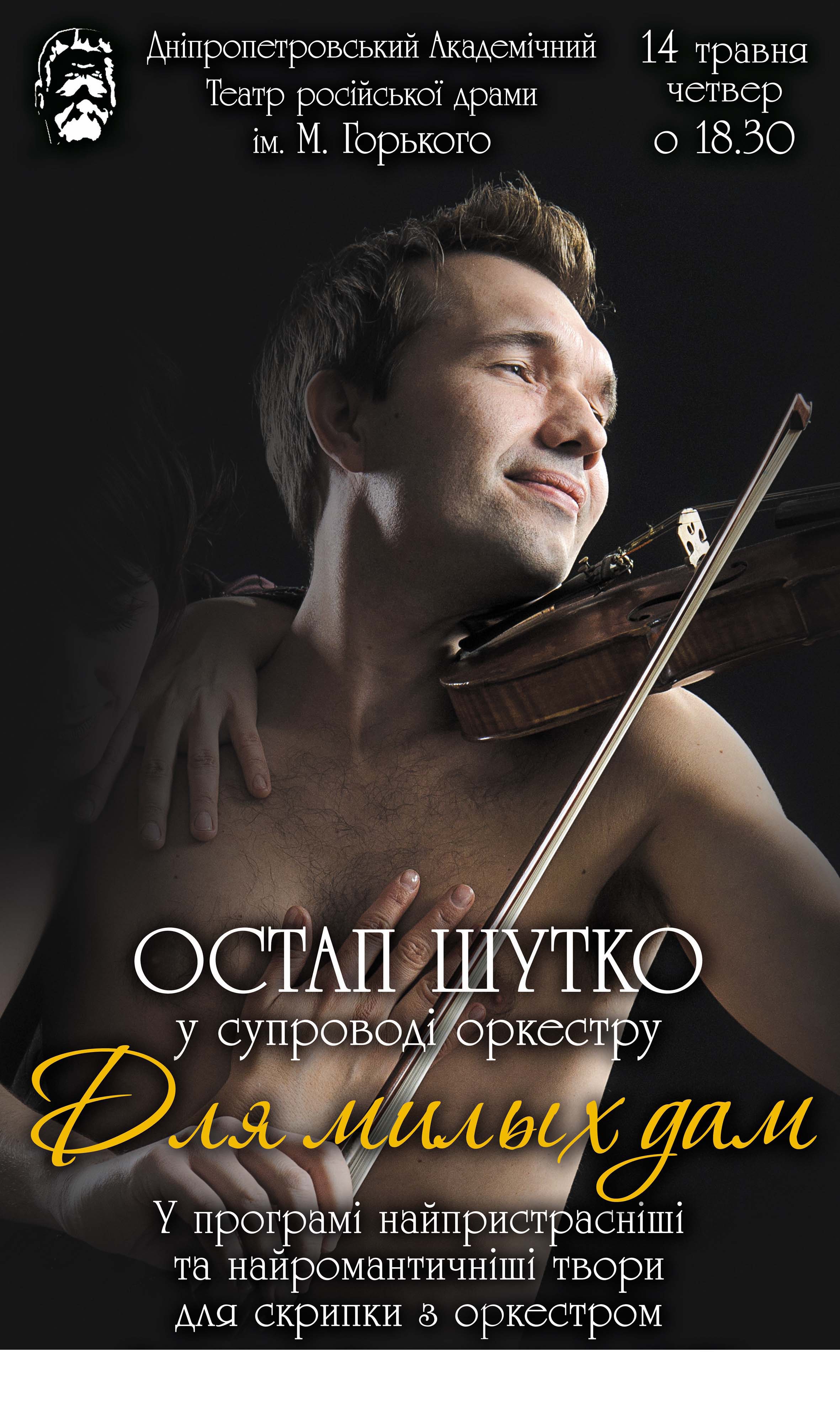 Остап Шутко в сопровождении оркестра с программой "Для милых дам" состоится 14 мая 2015, 18:30, четверг в Днепровский академический театр драмы и комедии. С помощью сервиса internet-bilet.ua, Вы сможете с легкостью забронировать, заказать и купить билеты на интересующий Вас концерт, спектакль, оперу, балет, мастер-классы, спортивные и детские мероприятия, оплатив их самым удобным для Вас способом: через интернет банковской картой VISA/MasterCard, наличными или курьером, если сделаете заказ билета c доставкой.