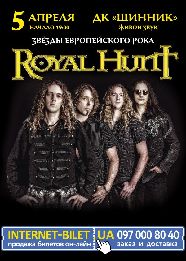 Royal Hunt состоится 5 апреля 2016, 19:00, вторник в Шинник-Арттерритория. С помощью сервиса internet-bilet.ua, Вы сможете с легкостью забронировать, заказать и купить билеты на интересующий Вас концерт, спектакль, оперу, балет, мастер-классы, спортивные и детские мероприятия, оплатив их самым удобным для Вас способом: через интернет банковской картой VISA/MasterCard, наличными или курьером, если сделаете заказ билета c доставкой.