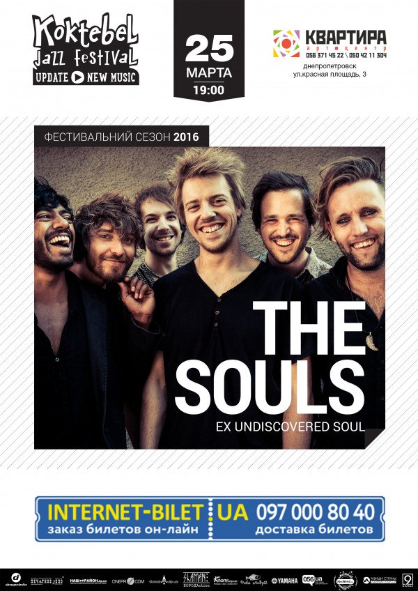 The Souls состоится 25 марта 2016, 19:00, пятница в АРТ-ЦЕНТР "КВАРТИРА". С помощью сервиса internet-bilet.ua, Вы сможете с легкостью забронировать, заказать и купить билеты на интересующий Вас концерт, спектакль, оперу, балет, мастер-классы, спортивные и детские мероприятия, оплатив их самым удобным для Вас способом: через интернет банковской картой VISA/MasterCard, наличными или курьером, если сделаете заказ билета c доставкой.