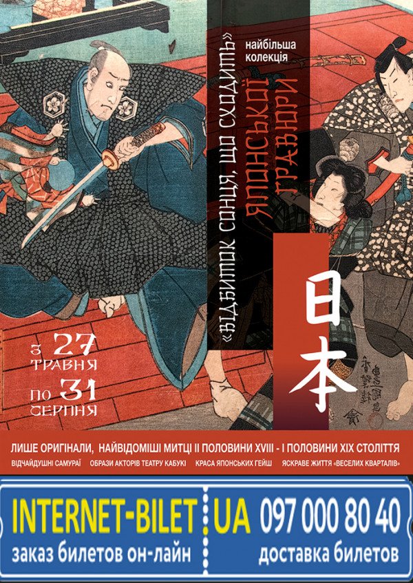 Найбільша колекція японської гравюри відбудеться 17 червня 2016, 15:00, п’ятниця в Музей Українського Живопису. За допомогою сервісу internet-bilet.ua, Ви зможете з легкістю забронювати, замовити та купити квитки на концерт, спектакль, оперу, балет, майстер-класи, спортивні та дитячі заходи, що Вас цікавлять, оплативши їх найбільш зручним для Вас способом: через інтернет банківською карткою VISA/MasterCard, готівкою або кур'єром, якщо зробите замовлення квитка з доставкою.