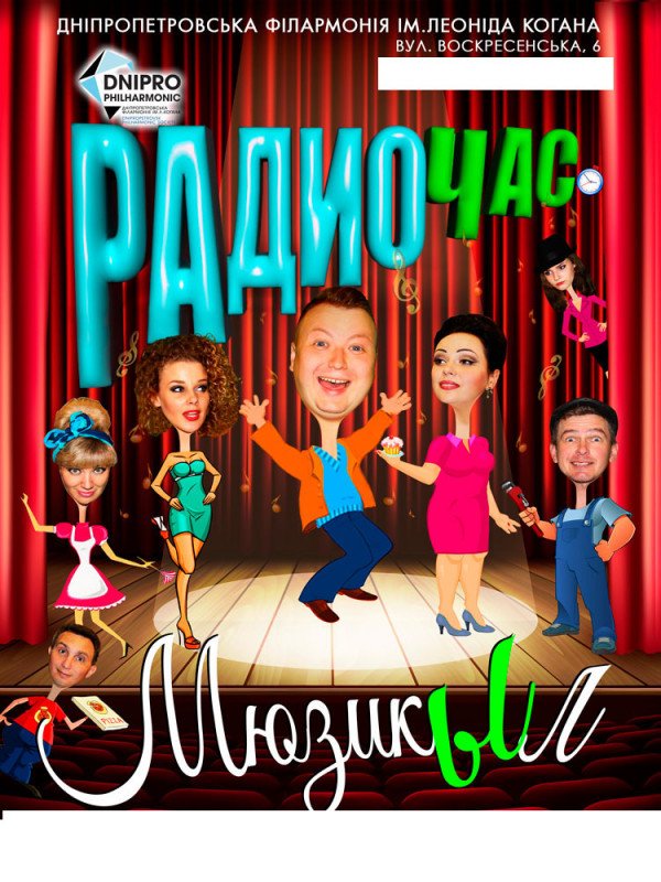 Мюзикл Радиочас відбудеться 27 вересня 2016, 19:00, вівторок в Дніпропетровська філармонія імені Л. Б. Когана. За допомогою сервісу internet-bilet.ua, Ви зможете з легкістю забронювати, замовити та купити квитки на концерт, спектакль, оперу, балет, майстер-класи, спортивні та дитячі заходи, що Вас цікавлять, оплативши їх найбільш зручним для Вас способом: через інтернет банківською карткою VISA/MasterCard, готівкою або кур'єром, якщо зробите замовлення квитка з доставкою.