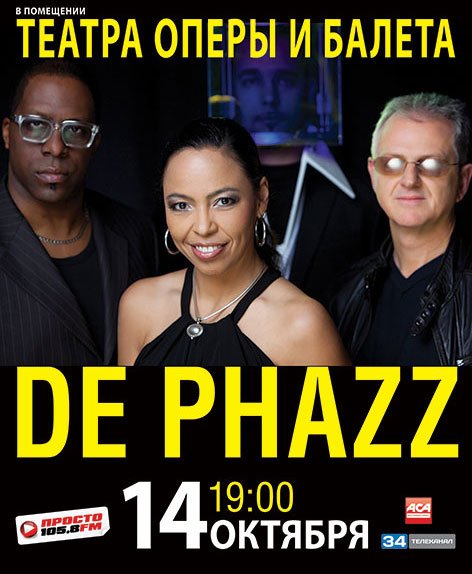 De Phazz відбудеться 14 жовтня 2013, 19:00, понеділок в Дніпровський академічний театр опери та балету. За допомогою сервісу internet-bilet.ua, Ви зможете з легкістю забронювати, замовити та купити квитки на концерт, спектакль, оперу, балет, майстер-класи, спортивні та дитячі заходи, що Вас цікавлять, оплативши їх найбільш зручним для Вас способом: через інтернет банківською карткою VISA/MasterCard, готівкою або кур'єром, якщо зробите замовлення квитка з доставкою.