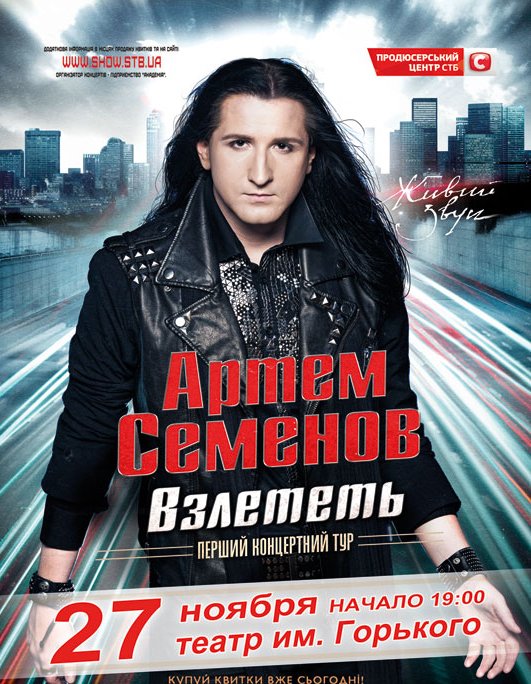 Артем Семенов відбудеться 27 листопада 2013, 19:00, середа в Дніпровський академічний театр драми та комедії. За допомогою сервісу internet-bilet.ua, Ви зможете з легкістю забронювати, замовити та купити квитки на концерт, спектакль, оперу, балет, майстер-класи, спортивні та дитячі заходи, що Вас цікавлять, оплативши їх найбільш зручним для Вас способом: через інтернет банківською карткою VISA/MasterCard, готівкою або кур'єром, якщо зробите замовлення квитка з доставкою.