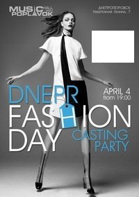 CASTING PARTY Dnepr Fashion Day відбудеться 4 квітня 2015, 19:00, субота в Poplavok Music Hall. За допомогою сервісу internet-bilet.ua, Ви зможете з легкістю забронювати, замовити та купити квитки на концерт, спектакль, оперу, балет, майстер-класи, спортивні та дитячі заходи, що Вас цікавлять, оплативши їх найбільш зручним для Вас способом: через інтернет банківською карткою VISA/MasterCard, готівкою або кур'єром, якщо зробите замовлення квитка з доставкою.