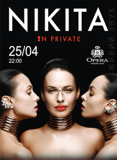 Nikita відбудеться 25 квітня 2015, 22:00, субота в Opera club. За допомогою сервісу internet-bilet.ua, Ви зможете з легкістю забронювати, замовити та купити квитки на концерт, спектакль, оперу, балет, майстер-класи, спортивні та дитячі заходи, що Вас цікавлять, оплативши їх найбільш зручним для Вас способом: через інтернет банківською карткою VISA/MasterCard, готівкою або кур'єром, якщо зробите замовлення квитка з доставкою.