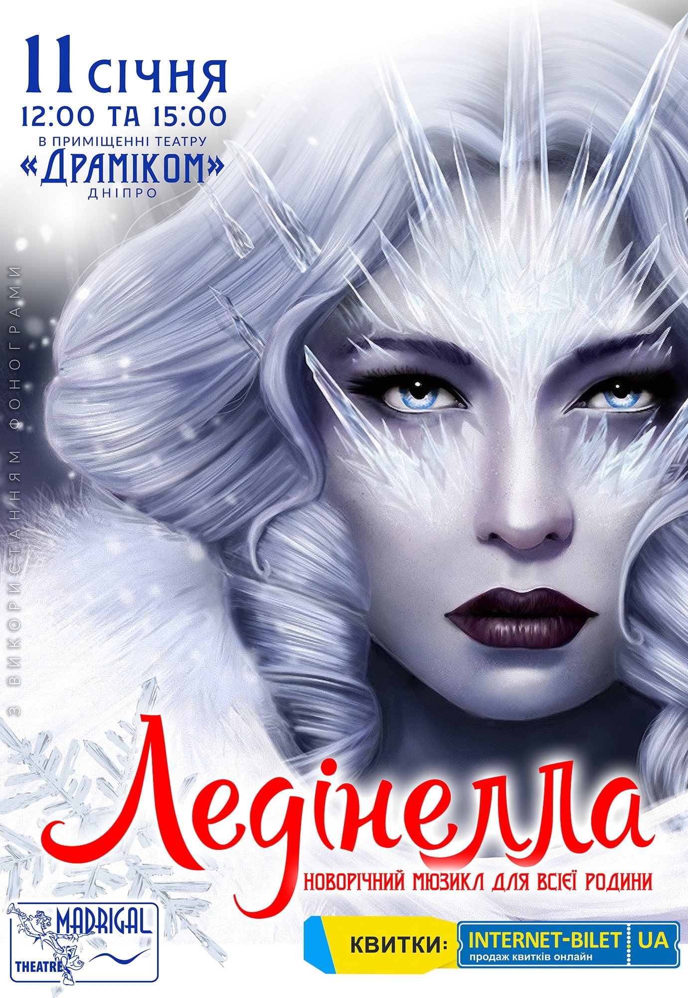 Театр "Мадрігал". Мюзикл "Ледінелла" відбудеться 11 січня 2026, 12:00, неділя в Дніпровський академічний театр драми та комедії. За допомогою сервісу internet-bilet.ua, Ви зможете з легкістю забронювати, замовити та купити квитки на концерт, спектакль, оперу, балет, майстер-класи, спортивні та дитячі заходи, що Вас цікавлять, оплативши їх найбільш зручним для Вас способом: через інтернет банківською карткою VISA/MasterCard, готівкою або кур'єром, якщо зробите замовлення квитка з доставкою.