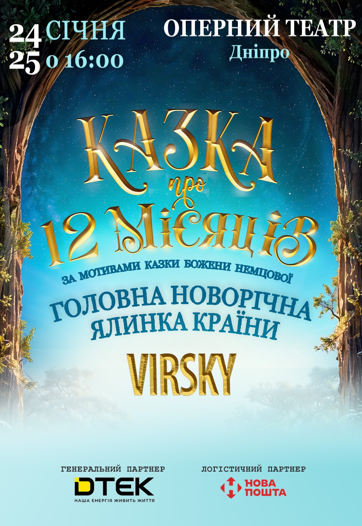 Казка про 12 місяців відбудеться 24 січня 2026, 16:00, субота в Дніпровський академічний театр опери та балету. За допомогою сервісу internet-bilet.ua, Ви зможете з легкістю забронювати, замовити та купити квитки на концерт, спектакль, оперу, балет, майстер-класи, спортивні та дитячі заходи, що Вас цікавлять, оплативши їх найбільш зручним для Вас способом: через інтернет банківською карткою VISA/MasterCard, готівкою або кур'єром, якщо зробите замовлення квитка з доставкою.