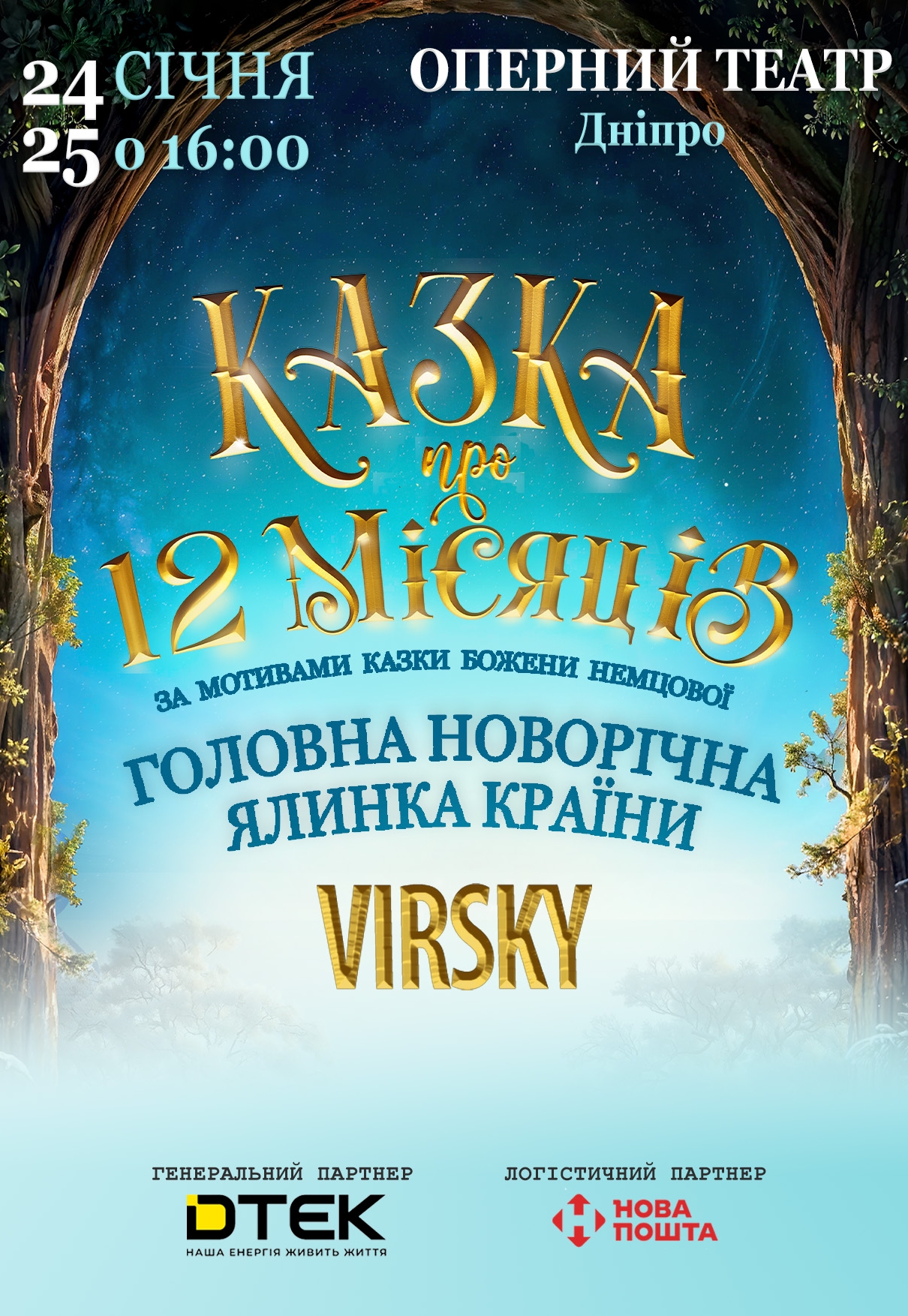 Казка про 12 місяців відбудеться 25 січня 2026, 16:00, неділя в Дніпровський академічний театр опери та балету. За допомогою сервісу internet-bilet.ua, Ви зможете з легкістю забронювати, замовити та купити квитки на концерт, спектакль, оперу, балет, майстер-класи, спортивні та дитячі заходи, що Вас цікавлять, оплативши їх найбільш зручним для Вас способом: через інтернет банківською карткою VISA/MasterCard, готівкою або кур'єром, якщо зробите замовлення квитка з доставкою.