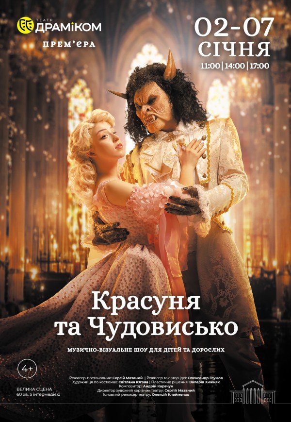Сцена буквально рухається разом із героями, створюючи ефект занурення у події. Магія перетворення, фантастичні образи та енергія акторів тримають увагу від першої до останньої секунди. «Красуня та Чудовисько» — не просто вистава. Це емоційна подорож у саме серце казки, де добро долає страх, а любов змінює світ.