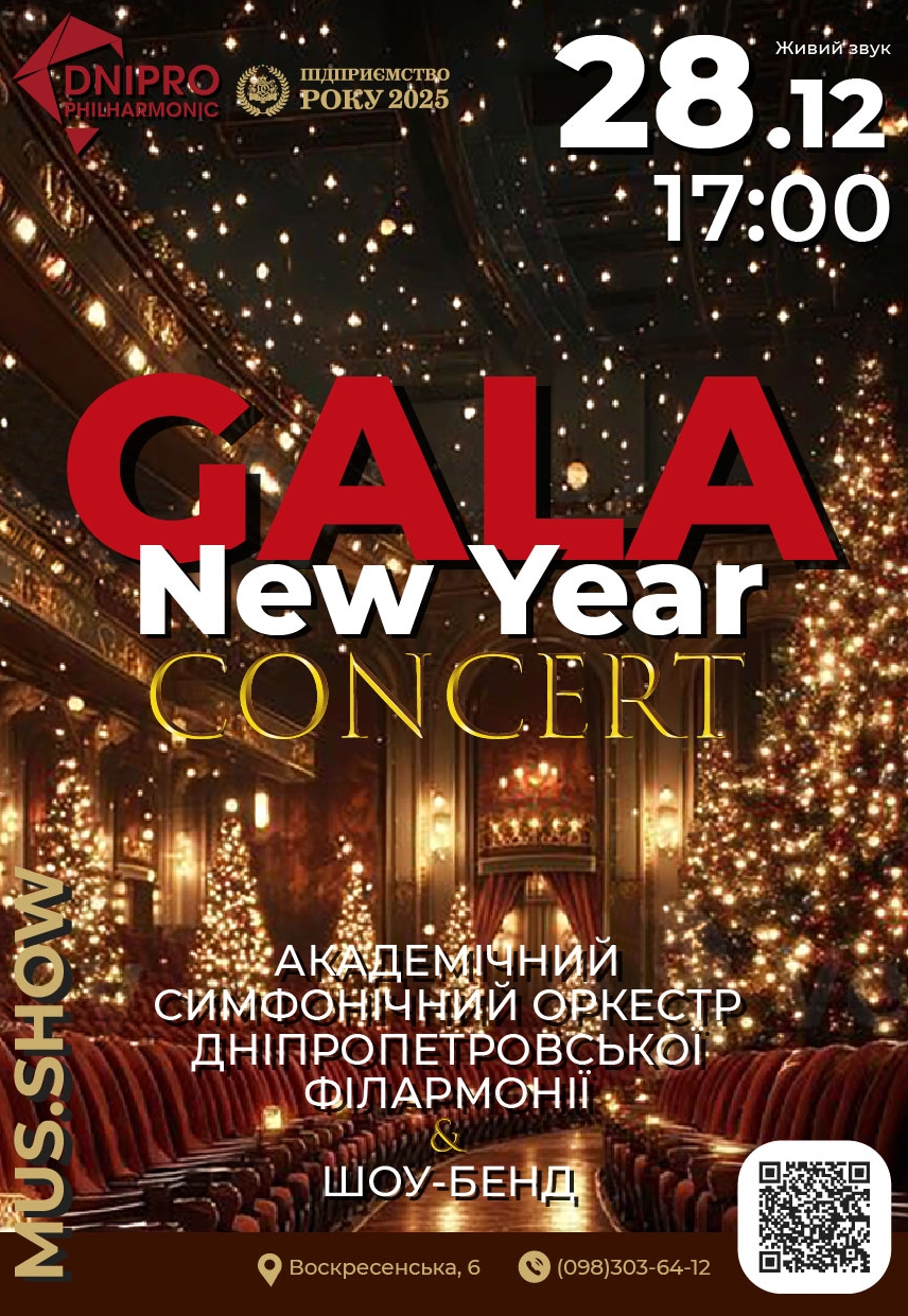 Новорічний гала-концерт відбудеться 28 грудня 2025, 17:00, неділя в Дніпропетровська філармонія імені Л. Б. Когана. За допомогою сервісу internet-bilet.ua, Ви зможете з легкістю забронювати, замовити та купити квитки на концерт, спектакль, оперу, балет, майстер-класи, спортивні та дитячі заходи, що Вас цікавлять, оплативши їх найбільш зручним для Вас способом: через інтернет банківською карткою VISA/MasterCard, готівкою або кур'єром, якщо зробите замовлення квитка з доставкою.