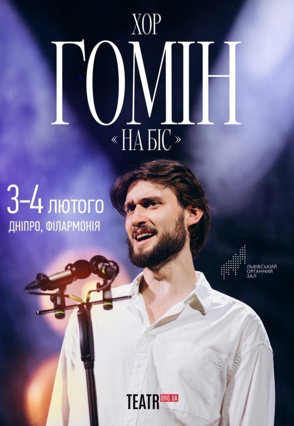 Хор "Гомін". На Біс! відбудеться 4 лютого 2026, 19:00, середа в Дніпропетровська філармонія імені Л. Б. Когана. За допомогою сервісу internet-bilet.ua, Ви зможете з легкістю забронювати, замовити та купити квитки на концерт, спектакль, оперу, балет, майстер-класи, спортивні та дитячі заходи, що Вас цікавлять, оплативши їх найбільш зручним для Вас способом: через інтернет банківською карткою VISA/MasterCard, готівкою або кур'єром, якщо зробите замовлення квитка з доставкою.