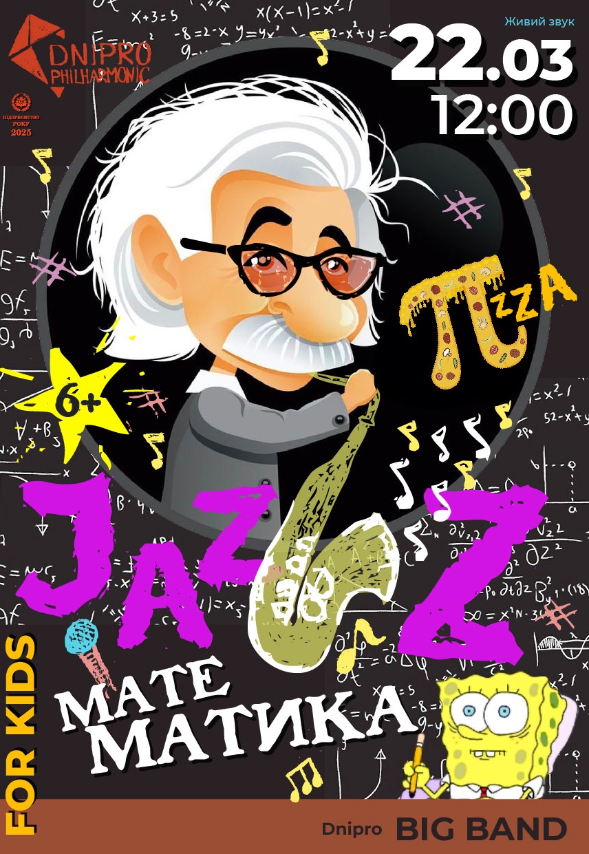 Музичний наукпоп «Jazz математика» відбудеться 22 березня 2026, 12:00, неділя в Дніпропетровська філармонія імені Л. Б. Когана. За допомогою сервісу internet-bilet.ua, Ви зможете з легкістю забронювати, замовити та купити квитки на концерт, спектакль, оперу, балет, майстер-класи, спортивні та дитячі заходи, що Вас цікавлять, оплативши їх найбільш зручним для Вас способом: через інтернет банківською карткою VISA/MasterCard, готівкою або кур'єром, якщо зробите замовлення квитка з доставкою.
