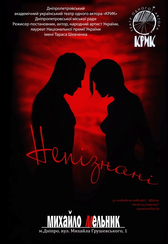 Вистава «Непізнані» відбудеться 15 березня 2026, 16:00, неділя в Театр одного актора "Крик". За допомогою сервісу internet-bilet.ua, Ви зможете з легкістю забронювати, замовити та купити квитки на концерт, спектакль, оперу, балет, майстер-класи, спортивні та дитячі заходи, що Вас цікавлять, оплативши їх найбільш зручним для Вас способом: через інтернет банківською карткою VISA/MasterCard, готівкою або кур'єром, якщо зробите замовлення квитка з доставкою.