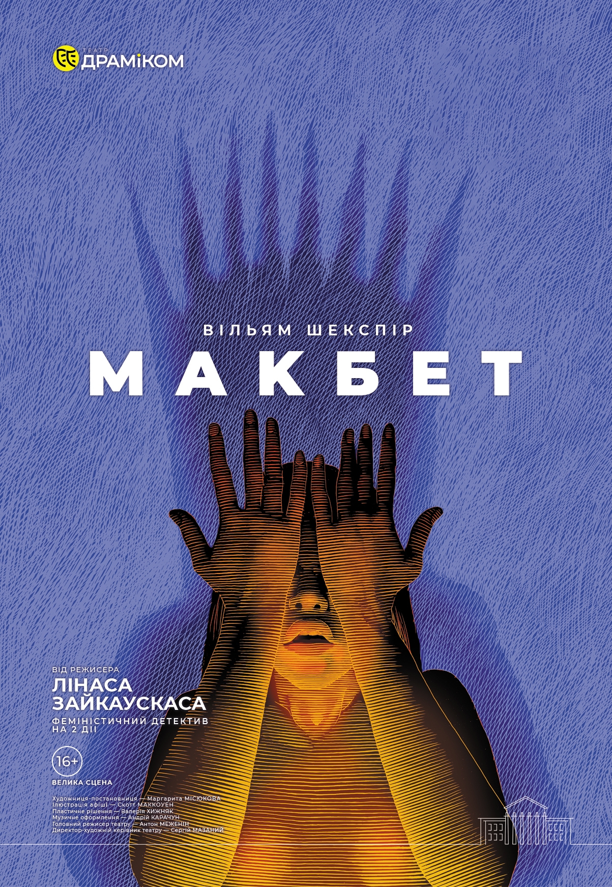 Феміністичний детектив на 2 дії. Дата прем'єри: 29 березня 2025. Режисер: Лінас Зайкаускас. Шекспір, якого Ви ще не бачили — жорсткий, сучасний і небезпечно актуальний. «Макбет» як феміністичний детектив вперше в історії українського театру. Головні ролі виконують жінки, відкриваючи приховані грані класичної трагедії. Політичні амбіції знищують дружбу.