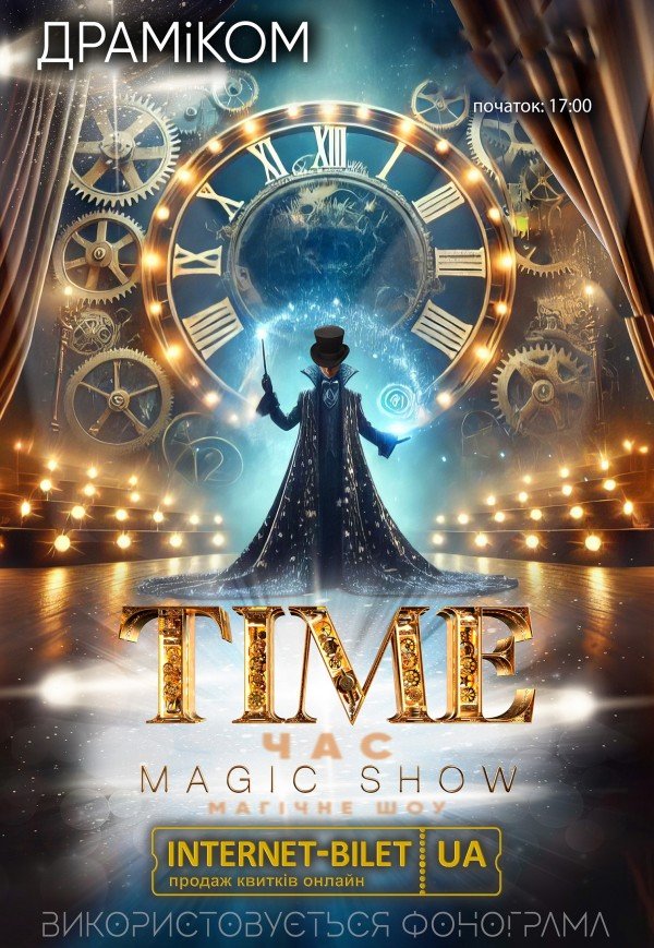 Magic Show "TIME" відбудеться 29 серпня 2025, 17:00, п’ятниця в Дніпровський академічний театр драми та комедії. За допомогою сервісу internet-bilet.ua, Ви зможете з легкістю забронювати, замовити та купити квитки на концерт, спектакль, оперу, балет, майстер-класи, спортивні та дитячі заходи, що Вас цікавлять, оплативши їх найбільш зручним для Вас способом: через інтернет банківською карткою VISA/MasterCard, готівкою або кур'єром, якщо зробите замовлення квитка з доставкою.