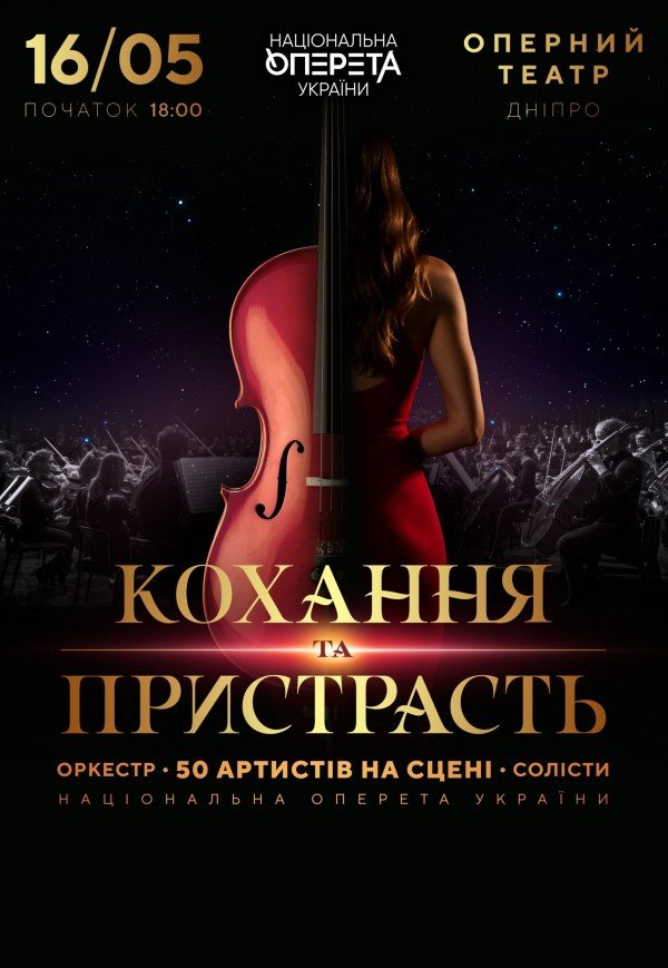 Дніпро, ви маєте це побачити! Один з найкращих театрів не лише України, а й Європи — славетна Національна оперета України та неймовірний Симфонічний оркестр Вінницької обласної філармонії ім. Леонтовича з грандіозним концертом-прем’єрою «Кохання та пристрасть» у Дніпровському академічному театрі опери та балету! Готуйтеся до справжнього емоційного вибуху!