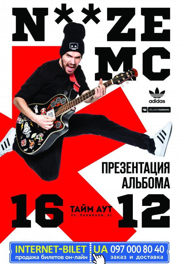 NOIZE MC відбудеться 16 грудня 2016, 19:00, п’ятниця в Тайм Аут. За допомогою сервісу internet-bilet.ua, Ви зможете з легкістю забронювати, замовити та купити квитки на концерт, спектакль, оперу, балет, майстер-класи, спортивні та дитячі заходи, що Вас цікавлять, оплативши їх найбільш зручним для Вас способом: через інтернет банківською карткою VISA/MasterCard, готівкою або кур'єром, якщо зробите замовлення квитка з доставкою.