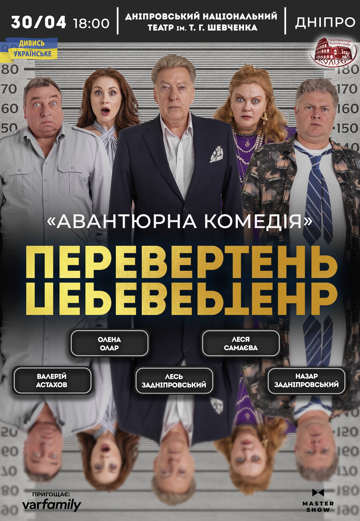 Вистава «Перевертень» відбудеться 30 квітня 2026, 18:00, четвер в Дніпровський національний академічний український музично-драматичний театр ім. Т.Г. Шевченка. За допомогою сервісу internet-bilet.ua, Ви зможете з легкістю забронювати, замовити та купити квитки на концерт, спектакль, оперу, балет, майстер-класи, спортивні та дитячі заходи, що Вас цікавлять, оплативши їх найбільш зручним для Вас способом: через інтернет банківською карткою VISA/MasterCard, готівкою або кур'єром, якщо зробите замовлення квитка з доставкою.