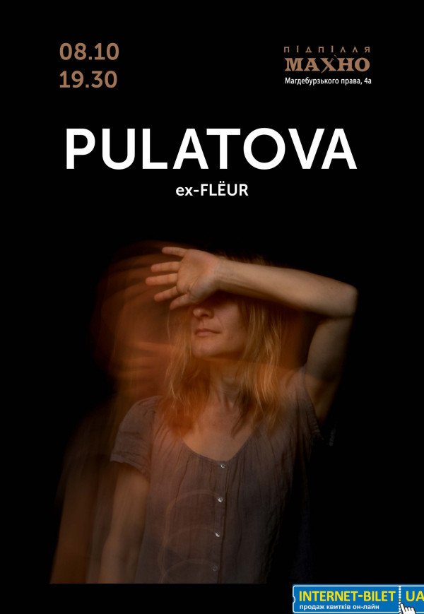 Pulatova відбудеться 8 жовтня 2019, 19:30, вівторок в МахноПАБ. За допомогою сервісу internet-bilet.ua, Ви зможете з легкістю забронювати, замовити та купити квитки на концерт, спектакль, оперу, балет, майстер-класи, спортивні та дитячі заходи, що Вас цікавлять, оплативши їх найбільш зручним для Вас способом: через інтернет банківською карткою VISA/MasterCard, готівкою або кур'єром, якщо зробите замовлення квитка з доставкою.