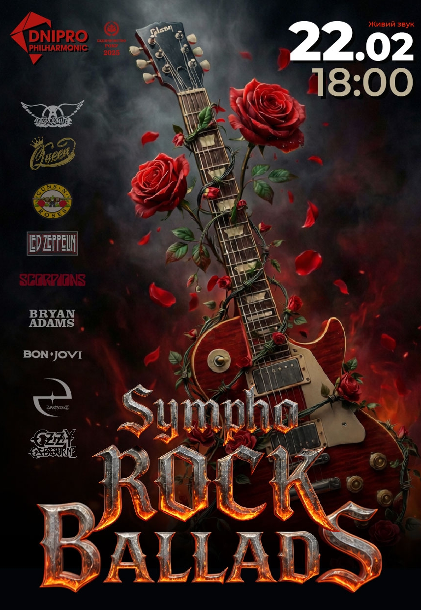 Гімни пристрасті від Scorpions та Aerosmith. Легендарна велич Queen та Led Zeppelin. Драйв та щирість Bon Jovi, Guns N' Roses та Bryan Adams. Містична глибина Evanescence та Ozzy Osbourne. Прийти на цей концерт — це як зустрітися зі старим другом, який розуміє вас без слів. Не чекайте «наступного разу».