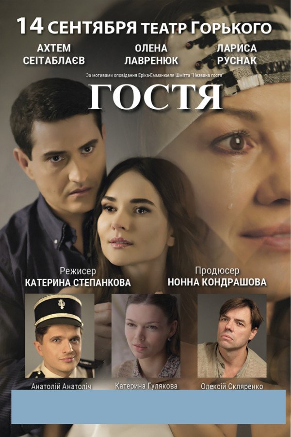 Гостя відбудеться 14 вересня 2016, 19:00, середа в Дніпровський академічний театр драми та комедії. За допомогою сервісу internet-bilet.ua, Ви зможете з легкістю забронювати, замовити та купити квитки на концерт, спектакль, оперу, балет, майстер-класи, спортивні та дитячі заходи, що Вас цікавлять, оплативши їх найбільш зручним для Вас способом: через інтернет банківською карткою VISA/MasterCard, готівкою або кур'єром, якщо зробите замовлення квитка з доставкою.